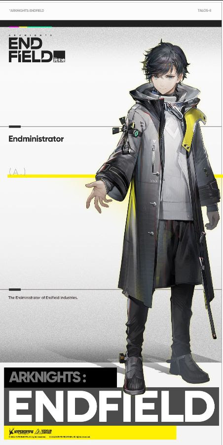 Como especialista técnico clave en Endfield Industries, el Endministrator, misterioso protagonista del juego, ha jugado un papel clave en momentos cruciales de la historia de Talos-II. Al final de cada crisis, el Endministrator siempre regresaba a una pequeña cápsula de hibernación, esperando el próximo despertar. Pero esta vez las cosas serán diferentes. El Endministrator luchará junto a Perlica y Endfield Industries, para luchar contra nuevas amenazas y catástrofes.