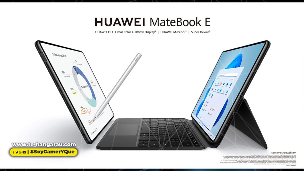 - La HUAWEI MateBook E, la primera laptop OLED de Huawei, brinda una nueva experiencia de PC 2 en 1, que combina las ventajas de las laptops tradicionales y las tabletas para adaptarse a diversas necesidades cambiando libremente su forma. Aprovechando al máximo su rendimiento profesional y sus excelentes capacidades audiovisuales, se ha convertido en una nueva opción para la productividad en todos los escenarios, ya sea de trabajo o de estudio. Junto con un rico ecosistema de aplicaciones de Windows y periféricos de productividad como el HUAWEI M-Pencil (2ª generación) y el HUAWEI Smart Magnetic Keyboard, la HUAWEI MateBook E ayuda a los usuarios a trabajar de forma más eficiente, sin importar dónde estén, convirtiéndola en la primera elección para la productividad móvil diaria.