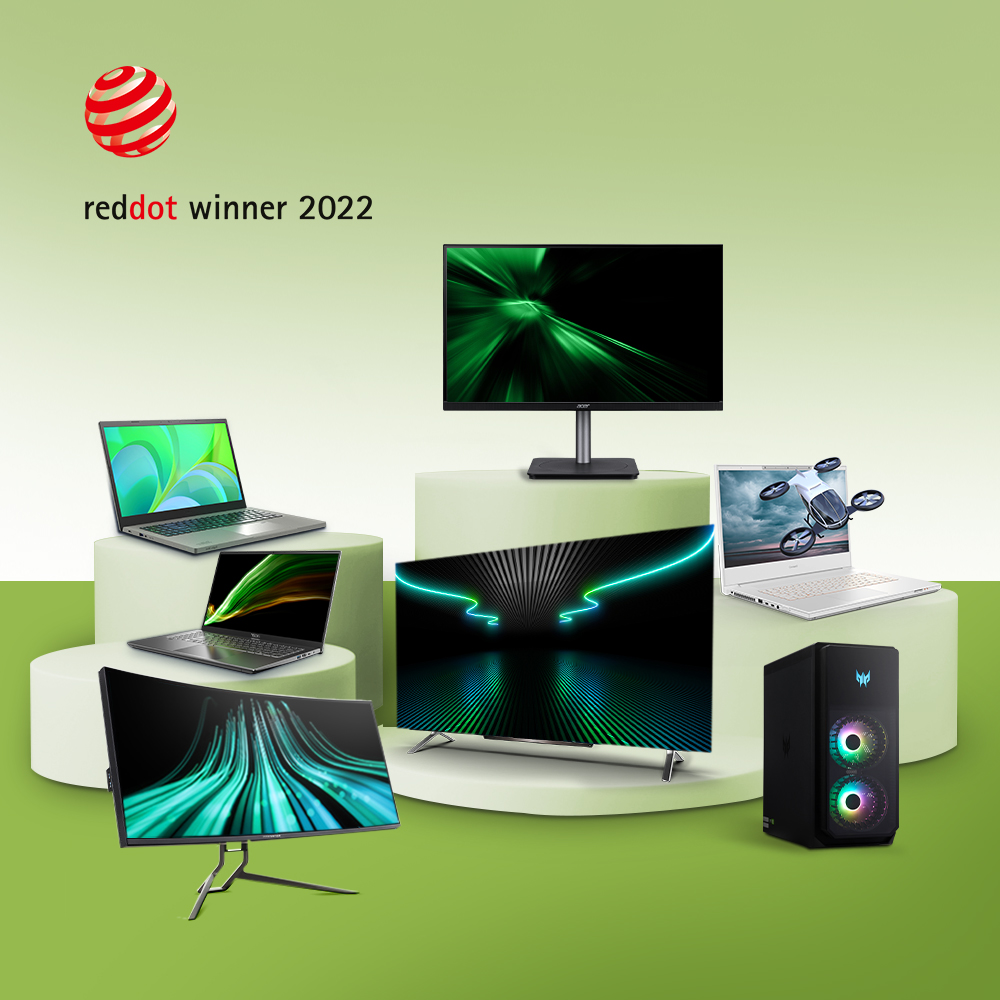 Acer recibió el renombrado símbolo de calidad de diseño, el premio Red Dot, por múltiples dispositivos en su cartera de productos. En la lista de ganadores se incluyen la laptop Acer Aspire Vero, centrada en la sostenibilidad; la desktop gaming Predator Orion 7000; el monitor gaming Predator CG48 OLED y el monitor curvo gaming Acer Nitro XR383CUR P. Además, las laptops Swift X delgadas, livianas y potentes y la laptop ganadora de premios ConceptD 7 SpatialLabs Edition que brinda 3D estereoscópico sin anteojos a diseñadores y desarrolladores.