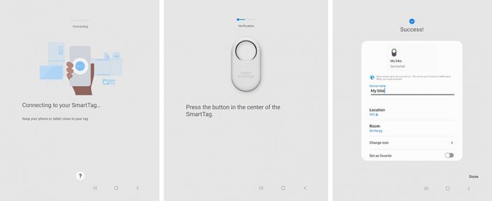 Sigue las instrucciones en pantalla para registrar la SmartTag2 en tu aplicación SmartThings A continuación, asigna un nombre al objeto que estás etiquetando, por ejemplo,»Bicicleta». Puedes modificar este nombre cuando quieras.